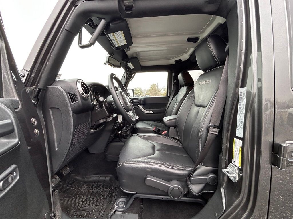 Inside, this Unlimited Sahara brings the right mix of comfort and utility. Leather-trimmed bucket seats, heated front seats, driver height adjuster, and front seatback map pockets make it easy to live with every day. The Vehicle Information Center and Tire Pressure Monitoring Display keep you informed, while Uconnect Voice Command with Bluetooth and the Connectivity Group keep you connected.